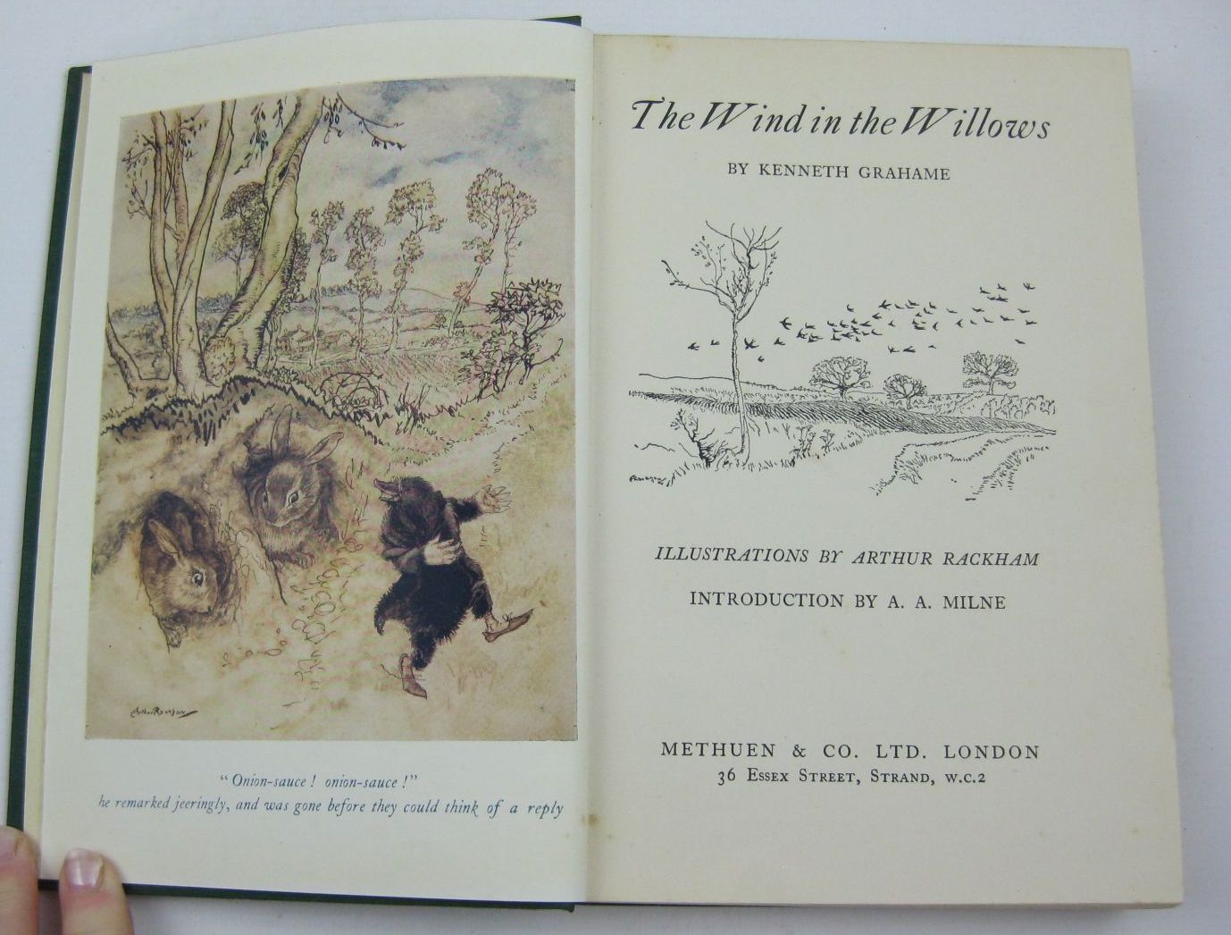 Almost very good condition in a almost very good dustwrapper. The last book to be illustrated by Rackham. Grahame himself originally approached Rackham to illustrate his book but at that time it could not be managed. It was thirty years later that Rackham finally consented. The pictures were finished just as World War II broke out and were originally published in America by the Limited Editions Club. Green cloth, gilt titles to spine. 12 lovely colour plates plus 15 line illustrations in the text. 178 pages.