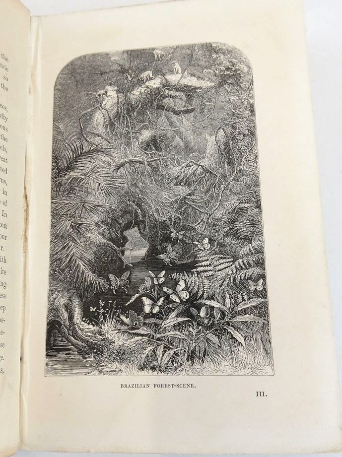 Fair condition. 1st Series, Second Edition. The author seeks to paint a series of pictures, the reflections of scenes and aspects in nature, which in his mind awaken poetic interest, leaving them to do their proper work. Green cloth boards, gilt title to spine, gilt vignette of monkey and boys to front board. 12 b/w illustrations, drawn by Wolf and engraved by Whymper. xiv and 372 pages including index, 4 pages of publisher adverts to rear.