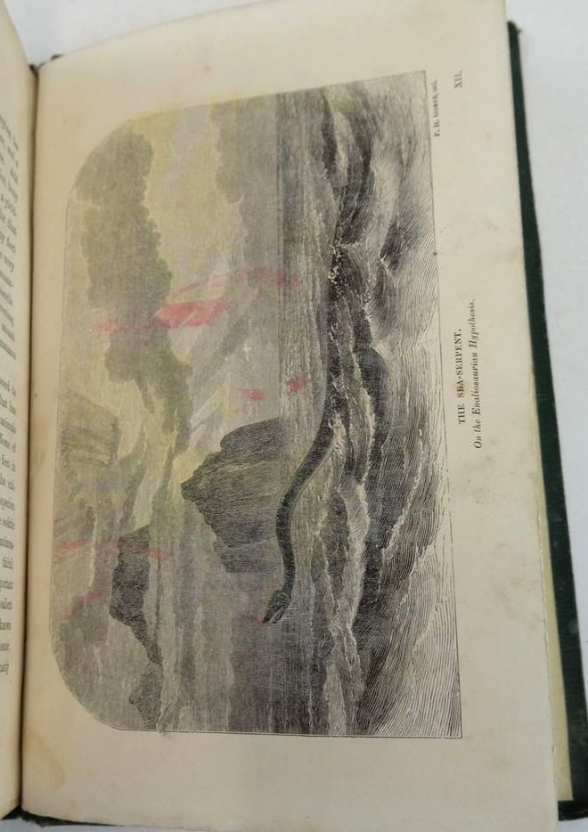 First series, second impression. Boards are rubbed, grubby, and edge-worn. Joints cracked and starting to split. Front endpaper removed, to 1.5" of half-title page removed (not affecting the title). Hinges pulled but binding is still holding. A little foxing and a few grubby marks to contents. Plate opposite page 358 (plate XII - The Sea-Serpent) has some red marks and discolouration. A good working copy, sold with all faults.