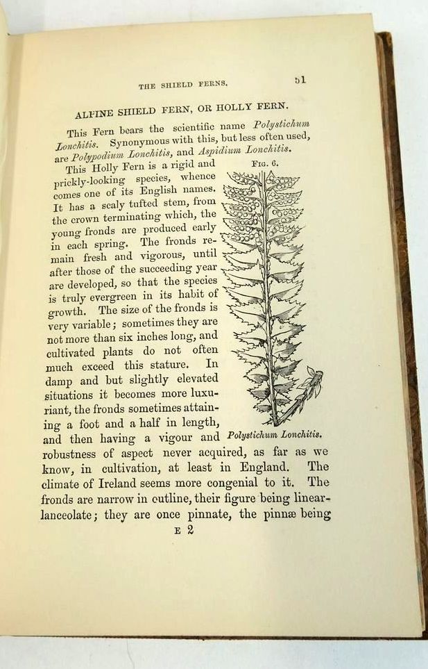 Very good condition. An Abridgment of The Popular History of British Ferns. Comprising The Ferns, Club-Mosses, Pepperworts, and Horsetails. Full calf boards, five raised bands to spine and green title block with gilt title. Marbled text block and endpapers. B/w illustrations to text. 12 hand-coloured plates printed in colours by Evans. iv and 187 pages including index plus plates to rear.