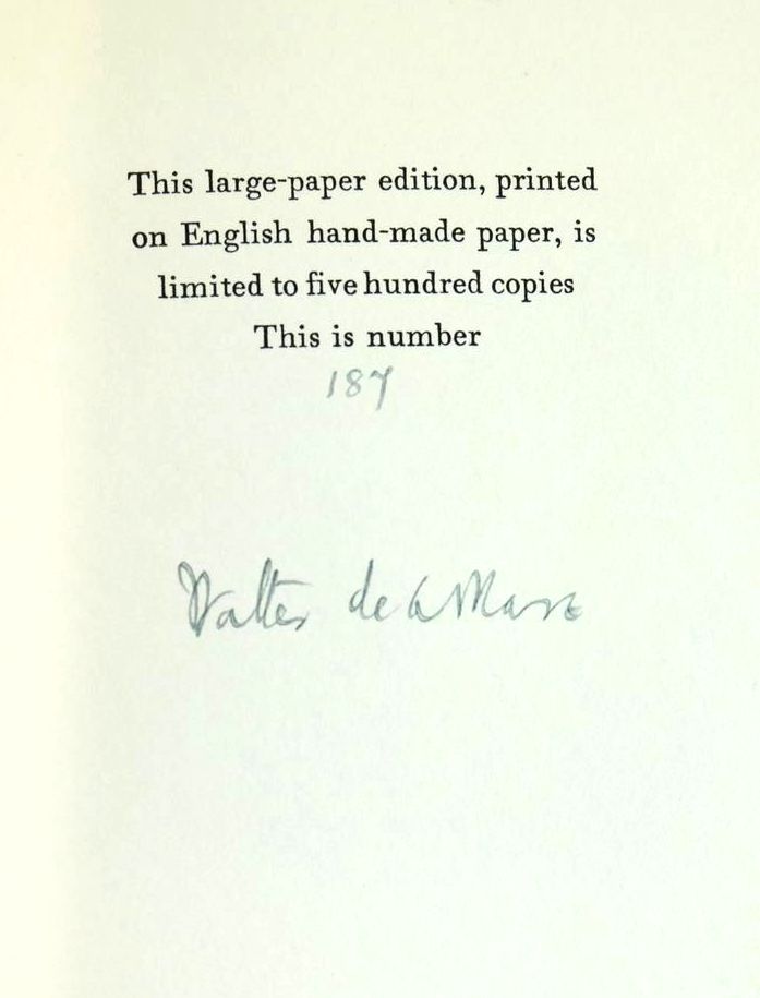 Very good condition. No. 11 of The Ariel Poems. Large-paper edition, limited to 500 copies. Light grey boards with gilt title to front. Small b/w illustration to half title-page and one full-page illustration.