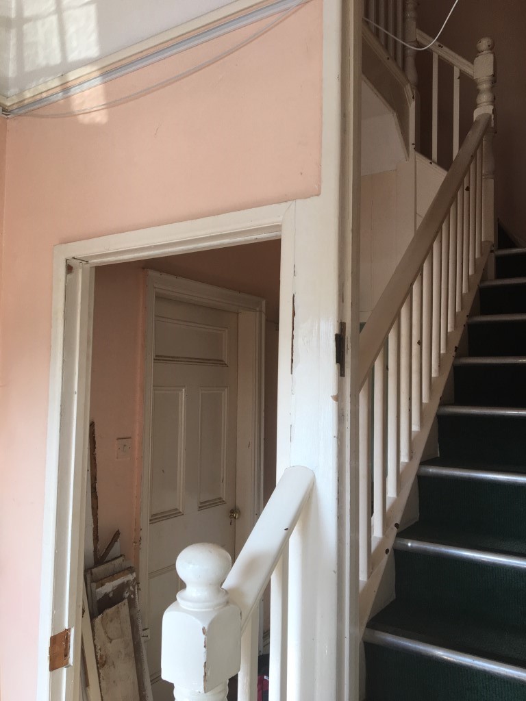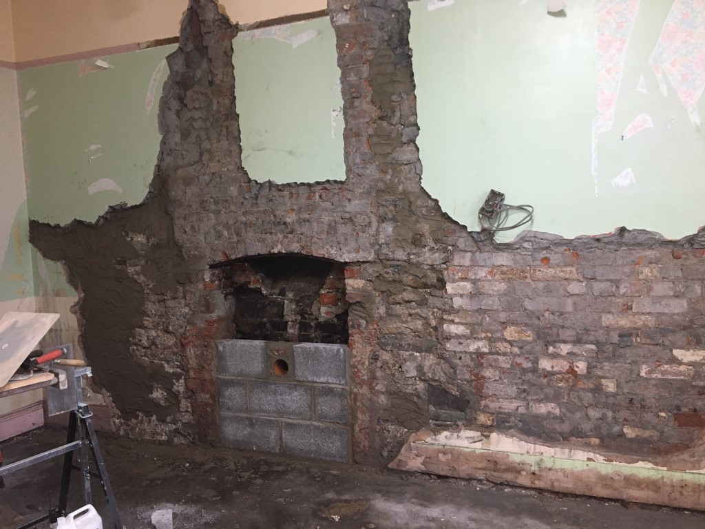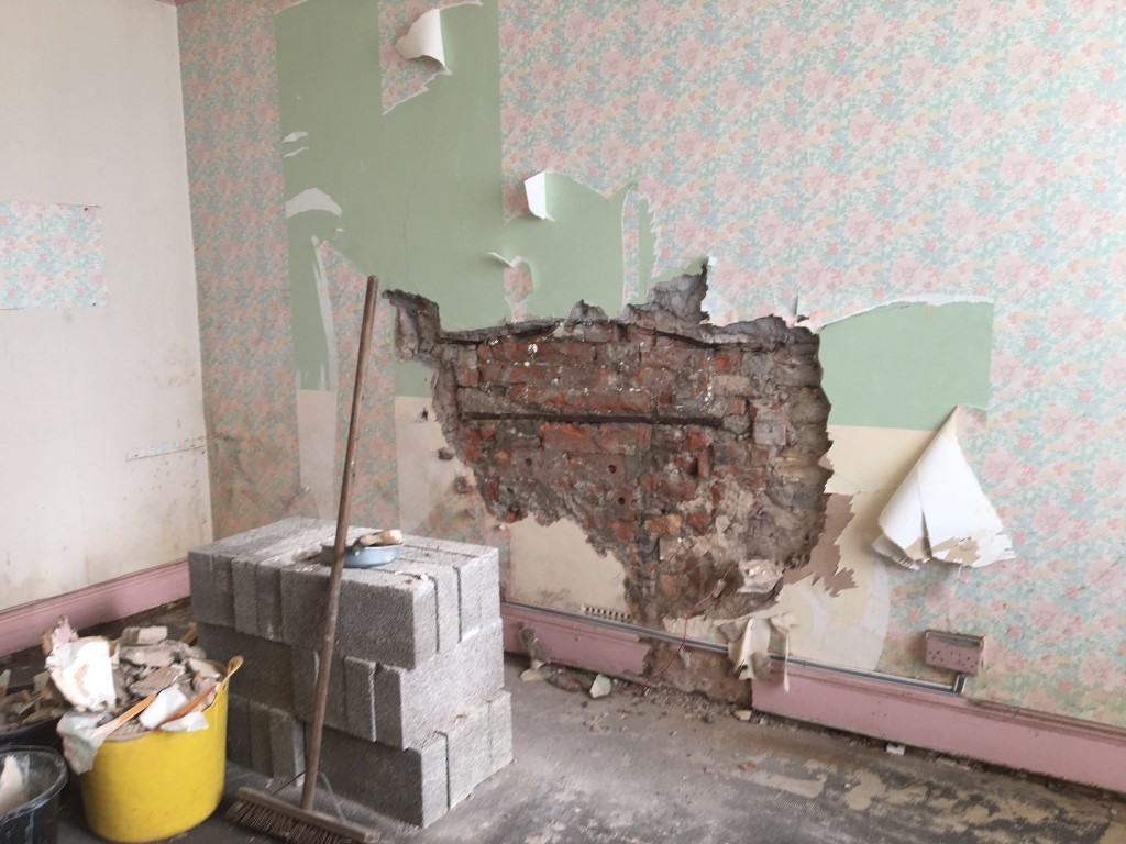 However, when we removed the bookcases in one of the rooms, we discovered the old fireplace (which had been bricked up many years ago) had a worrying bulge in it! So, the first job for the builders was to dig that out and make good. Additionally, in the hallway separating the two book rooms in question, a small dividing wall had been added at some time in the past. This wall needed removing to allow the floor work to proceed - but has resulted in the hallway being much lighter as well as opening up quite a bit of usable space around the stairs. We'll add a few photos below for those that find these things fascinating (click on the photos for larger versions). You can see why we are having to keep the shop closed to the public at the moment!