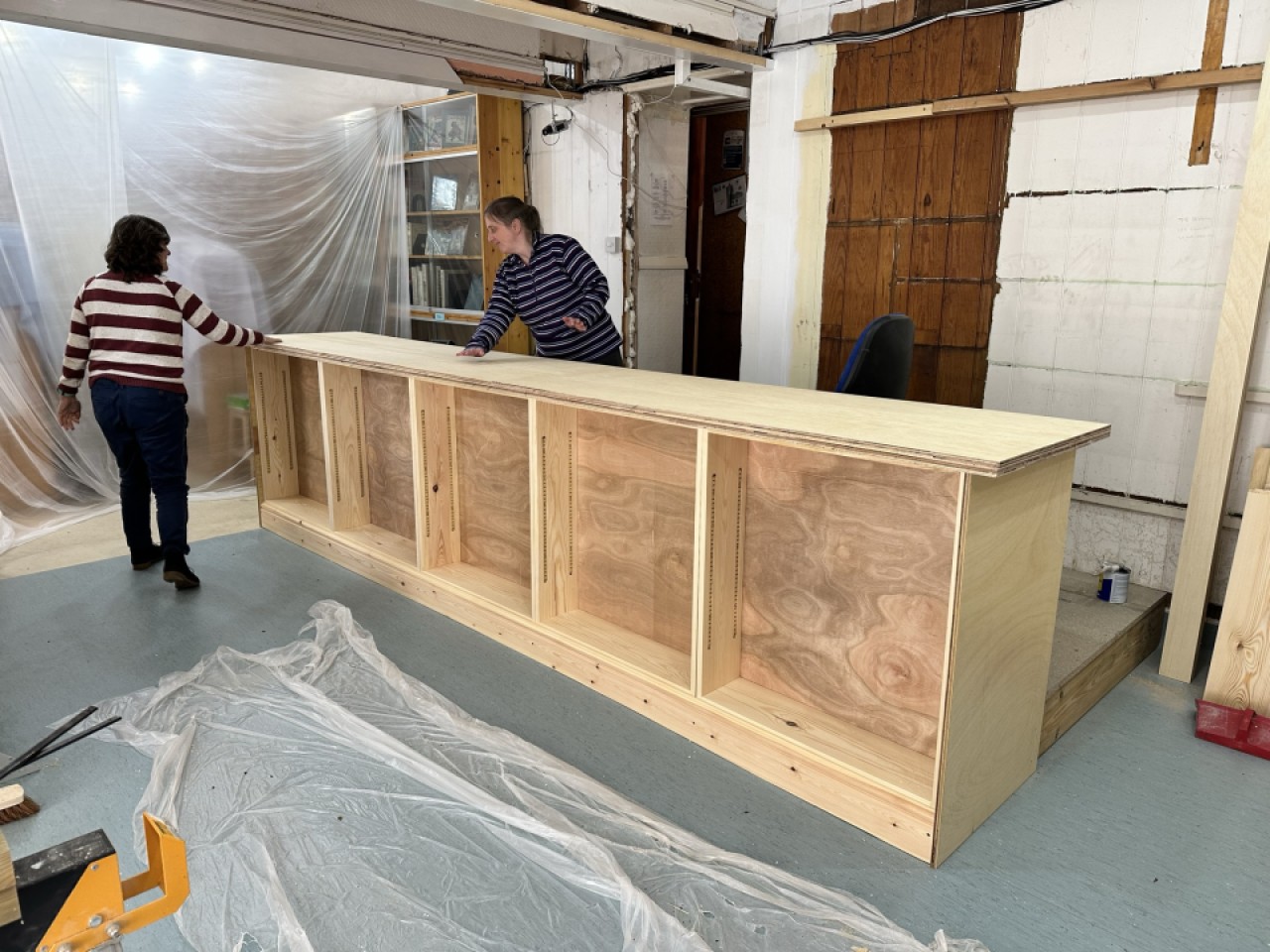 Our building work nears completion. The new desk is complete, and we've started to put the bookcases back in the room. We just have a bit of carpentry and general odds and ends to complete before reopening. We're hopeful that we'll be able to reopen on May 1st. Keep an eye on the website home page for confirmation!