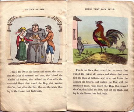 Songs and nursery rhymes produced in book form appeared during the first half of the 18th century. One of the most important publishers during this period was John Newbury who saw the commercial possibilities of children’s books very early on. He published his first book for children “A Little Pretty Pocket-Book” in 1744 and numerous others thereafter. He left a succession of dependents who continued and improved on his excellent work. One of the most significant events of the early 19th century was the take-over of the Newbury business by John Harris who was bursting with new ideas. He gave his little books a new, up-to-date appearance and was among the first to make extensive use of metal engravings and colour.