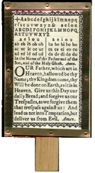The parchment would show the letters of the alphabet written in capital and lower case forms, a syllabary (a combination of vowels and consonants that taught correct pronunciations, which would later be used in reading longer words) and very often the Lord's Prayer, or another common religious verse. The Lord's Prayer would be something that would be familiar to the majority of children at the time, even before they learnt to read. This being the case, they could see in written form the words that they were used to speaking and hearing, so aiding quicker learning.