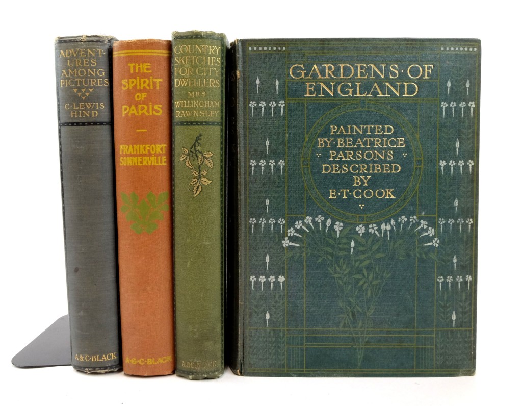They are lovely books, very informative, on mainly topographical, country or county subjects with a Lot (did I say, a Lot?) of colour plates! For example, the 20/- series had to have a minimum of over 200 pages of text with wide margins to accommodate the many plates often placed at two-page intervals… note: over 200 pages of text to accommodate the plates! (I think we get the general idea about the number of plates as I seem to be repeating myself.)