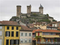 Visit to Foix today, only 30 minutes away. An interesting little town, famous for its castle which dates back to 987 and is known as a centre of the Cathars, a Christian movement in direct opposition to the Catholic Church between the 12th and 14th centuries. We paid up to go into the castle as, unusually, Sammy was allowed in! Wonderful views from the top of the tallest tower. Went into the tat – I mean souvenir – shop and Cliff found himself a very interesting book all about the Cathars. That will keep him quiet for a while.