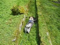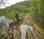 We heard back from the campsite at Urrugne about the damaged guttering – they have repaired it and have not charged us anything – which makes us feel doubly guilty but very relieved. We will definitely go there again if they will have us and next time will do our best not to destroy anything!! I know now that when Cliff is moving Brian I have to watch the front, the sides, the rear and the top – all at the same time! Oh well... Cliff found a lakeside walk for us to do today, the guide book says 3 hours so maybe we could do it in two. Parked up by the little café which unfortunately was closed, then set off. A few hundred yards on and we came across forestry workings – it looked as though they had driven right into the lake – they had certainly left the footpath in a great muddy mess. We plodded on and eventually came out onto grassland – hooray – mud is very difficult to walk through. Round the corner of the lake and – Aarrgghh! More mud, wider and deeper than before. Well by now it was just as far to go back as to go forward and so on we went hoping that eventually the footpath would reappear. No such luck! The footpath around the entire lake had been totally destroyed by the forestry machines. When we reached the dam we took a short cut across it, whizzed up through a farmer’s field before the bull or the dogs saw us and thankfully reached the road. Found a little seat and bench where we stopped for coffee – overlooking the lake but surrounded by farm machinery – very picturesque! Got back to the car and took Sammy down to the lake for a bath! What should have been a delightful lakeside walk turned into a literal mud bath!