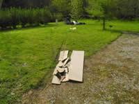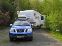 Today’s the day. Cliff has decided wet or not we are going to try and get off this grass pitch. The forecast keeps saying sunny days but we haven’t had any. First go was to try and pull the trailer forward so the wheels were on the roadway. Fortunately the Monsieur had given us two sheets of chipboard which we’d put under the trailer wheels to stop it sinking. Although they had broken we managed to roll forward off the grass but then the whole lot was facing the wrong way. So Cliff had the bright idea of unhitching the truck, manoeuvring that on its own to face the way we wanted to go and re-hitching. Except that when he reversed the truck up to the trailer the angle was too acute, he stopped just before the tailgate hit the trailer side! So think again. Only solution was to manoeuvre the trailer back onto the grass (aaarrrrgggghhh – hopefully it won’t sink) and try going forward again without hitting the hedge, tree, lamp post or getting the truck stuck in the mud. With much trepidation and heart thumping on behalf of both of us Cliff reversed the truck. Well, the trailer wheels went back on OK but there was now a rut about four inches deep – would we get off again?? I had the bright idea of placing the pieces of broken chipboard in front of the trailer wheels. Cliff went for it while I watched all the obstacles he could have collided with and – hooray – he did it - phew, phew and more phew! He then reversed up the roadway to park at the end of the road out of the way for the rest of our stay. We really don’t want to go through that again. In future we are going to make sure that the pitches we go on are hardstanding – even if it means setting up in a supermarket carpark!