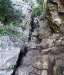 We went on to Saint Chely Du Tarn, another place we had stayed in 2002 on our cycling holiday. Most of the village now consists of annexes to the hotel but it is very very picturesque with its bridge and waterfall. We went into the millhouse where the river rushes through, inside, on both sides very noisily and Sammy was terrified! So we didn’t stay long in there but continued on up to the tiny chapel built into the rockface. Then we saw hanging off the cliff face a large strange brown object, which through the binoculars we could see was wild bee honeycombs! We went on to visit Sainte Enimie, also a very picturesque medieval village. Back through the Gorge to Brian for tea. A very full day!