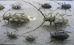 A bit of a grey day so we thought a good day to visit the Micropolis which is an exhibition of insects and facts surrounding insects. It’s situated at Saint Leon which is where J.H. Fabre, the father of entomology, was born. We spent a pleasant couple of hours wandering around the exhibits and trying to avoid the parties of schoolchildren. Sammy unfortunately wasn’t allowed in so he had to stay at home and ‘do guarding’. I have to admit, I would not like to meet some of the insects they had there, face to face. While many were very pretty, a lot were, um, not so pretty! The colonies of wood ants were fascinating – their nests and food supplies were connected by a maze of plastic tunnels so you could easily see them going about their daily business – they walk for miles in ant terms. My favourite was the little nest of bumble bees and the praying mantis that looked like leaves (1st pic 2nd row).