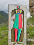 Stunning views all around but we couldn’t look too much as we had to be very careful where we put our feet! Sammy had his special mountaineering coat on with a handle on his back so we could rescue him if needed. But – where are the vultures? At the Vulture Centre last week we saw 30 or 40 wheeling around overhead today we could see – none! Well, maybe one or two in the distance. Perhaps one of their number had found a dead cow and they’d all gone out for lunch, whatever they were it wasn’t where we were. Still, we didn’t mind too much, the walk was brilliant and the weather beautiful. Will have to go back another day for vulture spotting. We have spotted a few bee-eaters around although we hear them more than see them – there’s not many birds which chirrup to each other while in mid-air so they are easy to recognise from their calls. We managed to find a less terrifying road down so got back safe and found ourselves a nice little café overlooking the river where we had a refreshing drink and Sammy met a little friend!