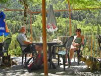 When we’d had our fill of vultures we walked back to the car and drove back down to Les Vignes where we had lunch in a lovely little restaurant by the bridge over the River Tarn. Then we drove up the beautiful Gorge Du Tarn. The road is narrow and is cut into the cliffs in many places, with overhangs and tunnels. We passed many campsites and at most of them we said ‘We would never get Brian Down There’ and I’m very glad we didn’t attempt to! Rounding a corner a large group of people were attempting to pull a little Italian car out of the ditch. We stopped and asked if we could help. Someone had a climbing rope which we used to pull the car out with, accompanied by claps and cheers from the spectators! A very worried Italian lady became a very relieved Italian lady! Our Good Deed for the day.
