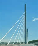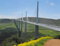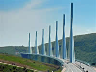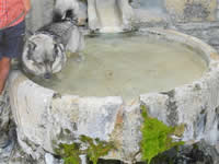 We then drove up to view the Millau Viaduct which when we were here on our 2002 cycling tour they were just starting to build. It is now the world’s highest multi-stayed viaduct with its highest point being 343 metres above the valley floor – taller than the Eiffel Tower! A very impressive but, strangely, beautiful structure spanning the river valley at a length of 2460 metres. We went first to the exhibition centre where we walked up to the viewpoint to take pictures. There were an amazing number of butterflies, including huge swallowtails, among the grasses and wild flowers at the top. Then we drove over the viaduct just for the fun of it (fun that cost 7 Euros for the toll!) and down the other side to view it from underneath. Here, built into the cliff face, was the tiny medieval village of Peyre where we found a little buvette with a terrace overlooking the river and the bridge. Of course we had to stop for a drink – a cold one this time as the afternoon was very hot. Sammy had already found himself a medieval drinking (and dunking) place! We were glad to get back to Brian and put the air conditioning on so we could all cool down.