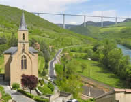 Walked into Millau first thing, alongside the river which runs behind the campsite. Lovely sunny day. We wandered around the old part of the town, admired the marketplace built in 1889 and the belfry, then sat and had our usual morning coffee.