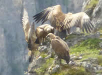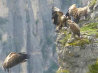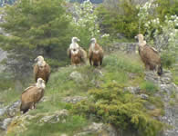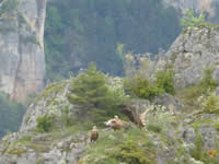 Cliff found a nice little walk above the little village of Les Vignes. He kindly drove us to the top so we didn’t have to walk 1500 feet to start! We were thrilled to see a couple of vultures perched on a rocky outcrop so stopped to watch them for a while. Then we came across a vulture feeding platform – since their re-introduction farmers are allowed to dump their dead animals on these platforms so the vultures are fed regularly. No dead animals there today but it was still a bit niffy. We turned the corner and there in front of us was a group of six vultures perched on top of a pillar of rock – Wow!