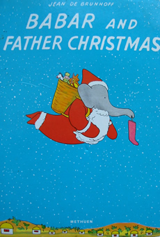 After his death, his French publisher Hachette, under the supervision of Jean's brother Michel, had the drawings coloured. Michel asked Jean's eldest son, Laurent, who was thirteen, to colour two double-page spreads for Babar at Home and the cover for Babar and Father Christmas.