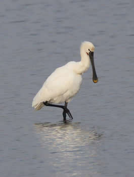 The salt marshes have a wide variety of waders. Examples of birds that are seen in the UK but are perhaps not common are the Spoonbill and Avocet and a bird that's easily seen at Slimbridge, a UK nature reserve, but not elsewhere in the UK but is common here is the Flamingo.