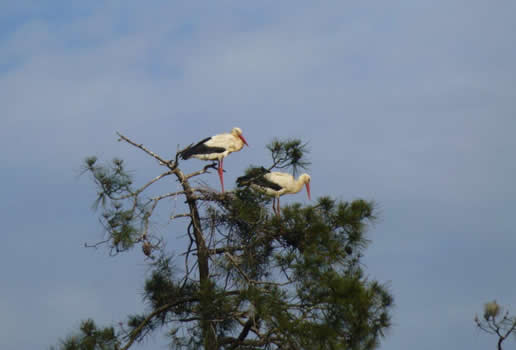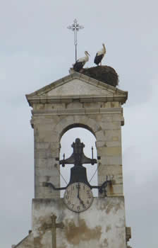 A peculiarity of the area, resulting from its position is that it's difficult to distinguish birds that are migrating, from resident breeding birds, and from those birds that just couldn't be bothered going all the way to Africa and thought the Algarve was a pretty good place to spend the winter before heading north again. For example, a few weeks ago we had a lot of White Storks arrive and they are now busily occupying and tidying their old nests (above).