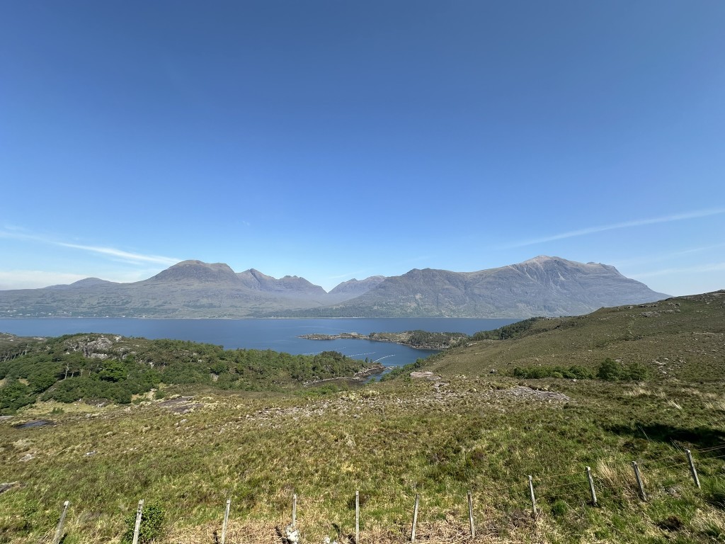 Continuing our journey to our first port of call on the NC500 at Applecross we stopped at Eilean Donan Castle – a beautiful little castle which has apparently featured in many TV programs and films. Arriving at Applecross late afternoon we settled into the campsite and then wandered down the road to the inn on the side of the loch. What a beautiful location! On the walk down to the pub we saw some wild deer – we were so close to them it was unbelievable. We had our dog with us but they were totally unbothered by us or our dog, equally our dog was totally unbothered by the deer! We enjoyed a nice meal of fish and chips from the van on the loch edge and then headed back to camp.