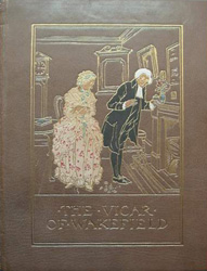 Below Left: decorative leather binding of Vicar of Wakefield illustrated by Rackham