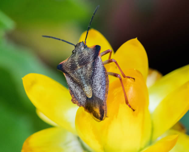The shield bugs are probably among the best known bugs in everybody's garden. There are roughly 7000 species of this little insect which is named after its shape - it often does look like the shields that knights used in medieval times to defend themselves. Another common name is stink bug because, when threatened, some species produce a foul-smelling liquid from special glands near their hind legs. Surprisingly, shield bugs often show parental care, guarding their young from predators – most unusual in the insect world! Few gardeners would consider them to be pests but, because they feed on the sap from plants, when they group in large numbers they can become a significant problem.