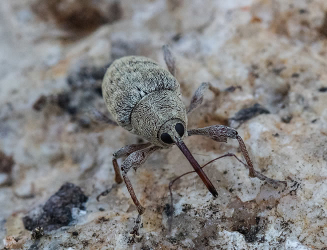 A more curious little creature is the weevil. Weevils are a type of beetle and there are over 60,000 species of them - you will be pleased to know that they are usually small, less than 6mm! An adult weevil has an elongated head that forms a snout and the mouth is at the end of the snout. Some weevils have a snout that is as long as the body! Weevils feed on plants and while most weevils are found in fields, gardens or orchards, a few species attack stored grains and seeds. They can be very destructive, and their damage is often very expensive. These little chaps are Acorn Weevils. They use their long nose to drill tiny holes and burrow into - yes you’ve guessed - acorns! The adult female bores into the immature nut to lay her eggs where they hatch into grubs. In the autumn, when the nuts fall, the grubs bore holes through the shells from the inside to emerge into the soil where they may live for a year or two before maturing into adult. I do think these look very cute with their antennae stuck on the side of their very long nose!