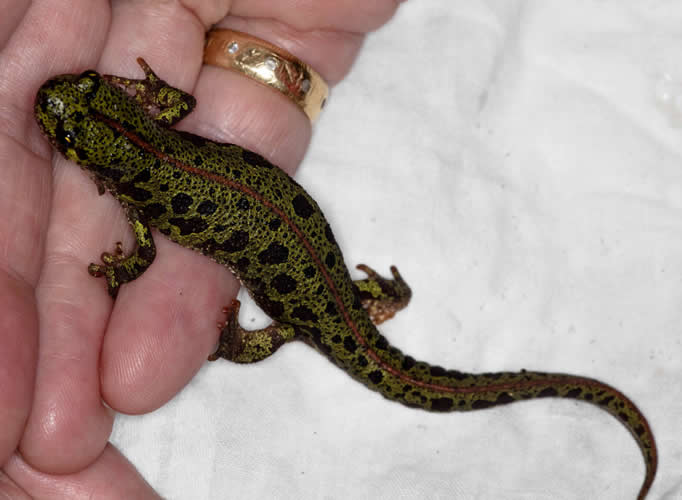 It rarely rains here in Portugal, but, when it does, out come all the damp-loving night time creatures – frogs, toads and salamanders. We returned home one evening after dark and discovered a visitor by the gate that we had not seen before. He looked like a lizard but lizards are out and about in the daytime. He wasn’t a gecko, his feet were not gecko’s feet. We took him inside to have a closer look and take some pictures. After much research we discovered to our surprise – he is a newt! To be precise, a Pygmy Marbled Newt. I had thought that newts were only found in water but no, this one lives in oak woodland (of which we have lots) and uses ponds, ditches and other water bodies for breeding. The Pygmy is a species of salamander and is only found in the southern parts of Portugal and Spain, hence its other name, the Southern Marbled Newt. The International Union for Conservation of Nature has assessed its status as being "near threatened" because its habitat is being degraded by urbanisation and the loss of temporary water bodies. Another threat to the species is the introduction of crayfish and non-native fish and the pollution of its breeding sites. We felt most honoured to have been visited by this lovely little creature.