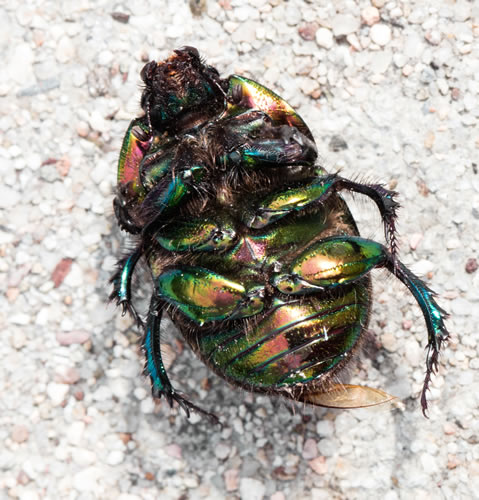This visitor appeared to be a very ordinary beetle when he flew down close by. In fact I’m sure he is a very ordinary beetle but when I turned him over – just look at those beautiful irridescent colours – marvellous!
