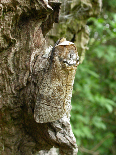We found the next character wandering around on the patio. Again we had no idea what he was, whether he was a beetle larva (a Very Big Beetle…) or a caterpillar. He was about 8 centimetres long and seemed to know where he was heading. After the first one, we continued to see others at regular intervals, all on the ground and all roughly the same size. More research required! We discovered they are caterpillars of the Goat Moth, a large heavy moth with a wingspan of 7-10 centimetres! The Goat Moth is so-called because the caterpillar can give off a smell reminiscent to that of a male goat. If you’ve ever smelt a billy goat you will know it’s not very pleasant. Fortunately our caterpillars were friendly and we didn’t have to suffer the smell! The caterpillar burrows into the trunks of various deciduous trees and feeds on the wood. (Apparently the Romans consumed these caterpillars as a delicacy after rearing them with a diet of flour which is much easier to digest than wood and so caused them to grow faster!) Eating wood requires a long digestion period which prevents the caterpillars from developing quickly. Amazingly they live for up to five years and we were lucky to see these as they only leave their trees when they are ready to come to the ground to find a place to pupate. We've not yet seen the moth but here is a beautiful photo from Mark Skevington Ukmoths.org.uk (below right).