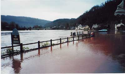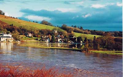 Early morning in the village, mist slowly lifting off the River Wye opposite the shop.