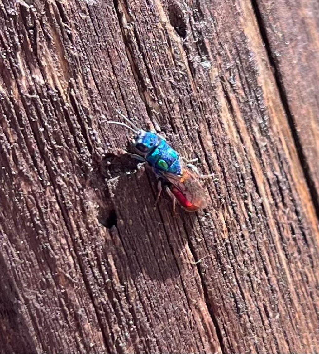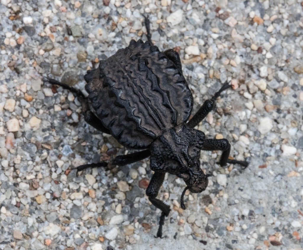 Talking of “coffee bean” beetles – have you ever looked at the underside of one of those nondescript black beetles that you see everywhere? While many of their fancy insect ‘cousins’, such as the ruby-tailed wasp, are dressed in beautiful shimmering colours, some of the ‘plain’ black beetles have the most gorgeous iridescent colours hidden away underneath them. Have a look next time you see one.