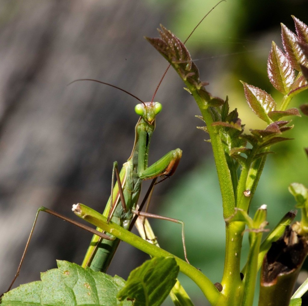 Anyway, back to real insects. When we lived in Portugal we saw many species that we don’t often see, if at all, in the UK. One of my favourites is the praying mantis of which there are about 2,400 different species. Some are amazing in their camouflage, looking just like flowers, leaves, twigs, even moss. The most exotic mantis we saw was the conehead mantis which looks like an alien from outer space! The mantis is the only insect in the world able to turn its head 180 degrees – I think they look so cute when they turn to look at you.