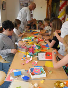 The afternoon events take place in the school theatre opposite the hall. This is also where the ever-popular Origami workshops are held.