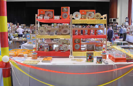 As a Rupert collector I always enjoy the day and it’s a chance for us to meet old friends, find some new ones and hopefully sell a few books! For the last few years the event has been held at the excellent facilities at Warwick School. We are based in one of the school halls, along with another 10 or more dealers selling all manner of Rupert books, toys, pictures, models, badges and other Ruperty paraphernalia.