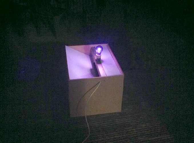 So, when Isaac asked the question “how can we see them?” the answer was obvious. He loves woodwork and making things and we soon had some leftover wood turned into a decent sized ‘Skinner trap’. This is essentially a sturdy box, with a top that slopes downwards under a batten on which is fixed a light source; the moths will be attracted to the light and will drop down the sloping sides and into the box where they will rest among a collection of old egg boxes. Finding a suitable light to attract them was a bit harder. A mercury vapour bulb was out of the question. Even if I could have found one (which, in the Forest of Dean, believe me you can’t) I had no wish to test the patience of my neighbours and the understanding of the local constabulary by putting something akin to the main landing lights at Heathrow in the garden.