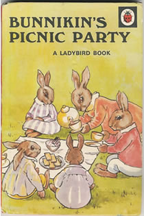 In 1940 "Bunnikin's Picnic Party" was produced. It came complete with a dust wrapper and a smaller version of the cover illustration hand pasted onto the cover boards. It was given a series number of 401, the first two digits being the decade and the last digit being its place in that particular series of books.