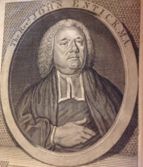 A bit of further research into the Reverend John Entick M.A. reveals that he wasn't a Reverend and he didn't have an M.A!