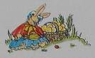The basket contains a large strange egg. (This must be one of the strangest Easter eggs ever! But the egg, and its basket-work, and ribbon-wrapping, are strongly evocative of Easter and Easter eggs!) As the egg nears hatching it heats up, and then starts to crack and emit puffs of smoke! The multitude of small beetles who live in the darker corners of the huge tree house, naturally, organize a fire brigade service, with helmets and boots that are too big for them, and large fire hoses that drip everywhere. (The beetles in the Bumble books often provide an amusing subplot of their own, like miniature Keystone Cops!)