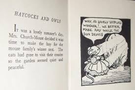The first book Bumble is light, in narrative, but pleasant, although it does little more than introduce Bumble and the Macmouses. We see, for example, how Bumble helps the mice bring in the wheat harvest. (The attention to local seasons recalls Orlando, the marmalade cat, whose farming featured in a novelty peep-show book of that era, showing Orlando and his friends in the four seasons. Orlando was the creation of Kathleen Hale, herself a remarkable author-illustrator.)