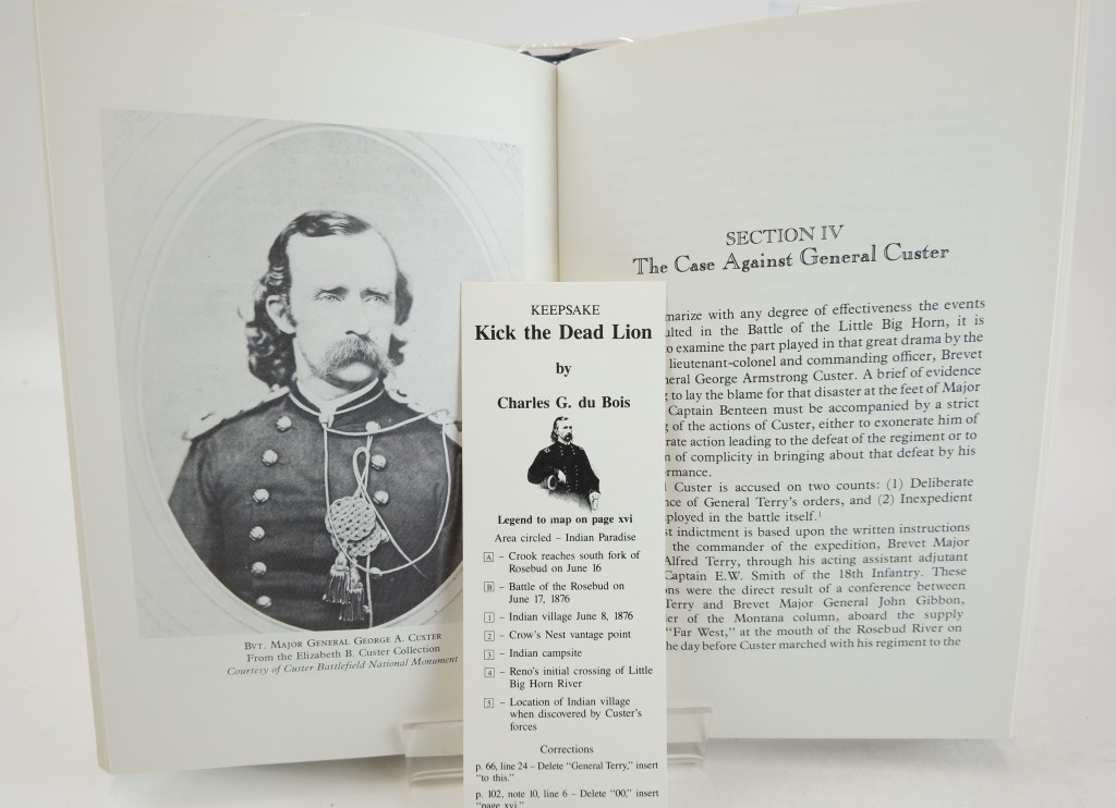 A Casebook of the Custer Battle…  the author states: “General George A. Custer died a hero’s death in the service of his country. His was a soldier’s death, quick and violent. Mourned by his friends, and they were many – reviled by his enemies, and they were many – he emerges today, in the light of truth, an honourable man worthy of his country’s adulation… Perhaps we may then agree with General Nelson A. Miles, one of the greatest of the army officers who served on the Western Frontier, when he said, ‘I have no patience with those who would kick a dead lion’.” And so, there we have it… that is where the title came from!