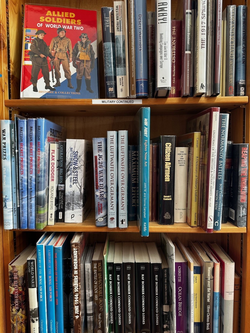 When I took over the buying of books from Cliff & Chris more than ten years ago (that is, everything except children's which is Maria’s speciality), I never would have guessed how many military type books there are! I say type as many end up on the history shelves as opposed to the military shelves, also the aviation shelves, and the maritime shelves… It is hard to know where to draw the line when military becomes history. I try to stick to a rule of thumb that our military shelves are from World War I subjects onwards, anything before that goes into history or, sometimes, our transport shelves but it doesn’t always work out that way!
