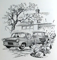 After the war he returned to his clerking job in Birkenhead which had been held open for him. One day he decided he had had enough and handed in his notice. He obtained a government grant and went off to Liverpool College of Art where he completed his degree in 3 years instead of the more normal 5 years. He married Rhona Ladbury, who was also a painter and they moved to a village near Wolverhampton where he taught at the art college. He continued his cartoons in his spare time, selling his first cartoon to Punch in 1950.