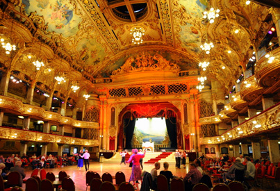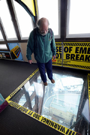 We motored on south, back into England. We went by bus to Blackpool and stood on the Walk of Faith (above right) where we could look 380 feet - straight down. The elevator attendant told us about the crack in the glass, everyone laughed, but it turned out to be true, though, fortunately for us, not dangerous. The ballroom was a sight to behold too, with people dancing, everything very plush and the organ being played at the end of the room.