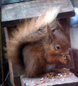 Blairgowrie and Dunkeld showed us many interesting walks, as the snows were melting the rivers were in spectacular spate. Nearby is Loch of the Lowes where a female Osprey has returned each year to breed for the past twenty years. We waited to see her arrive, which she did. She can be seen from a web cam. Also here they have a large window onto a small woodland area where they hang many feeders. Easy to see therefore was the Red Squirrel, Greater Spotted Woodpecker and many, many other birds. I counted 15 species in one hour, including a tree creeper on a feeder. We stopped briefly on the Isle of Mull - we'd like to return to see the sea life there.