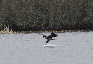 We decided to travel on rather than back so continued to explore the east side of Scotland. My March birthday was particularly enjoyed by my husband as we visited Lossiemouth so that he could watch the aircraft coming in and take good photos. We also enjoyed a lovely soup named Cullen Skink - if you ever come across it we can recommend it. It is made with smoked haddock and cream. Loch Spynie, near Elgin, was a great place for wild life with a heronry, red squirrel and hare to name but a very few. Loch Kinordy showed us a once in a life time view of a young Sea Eagle trying to see if it could pick up a Swan. Nick has photographs of the eagle coming in with talons at the ready (above). The swan didn't seem too perturbed as it raised its head to see what was going on and the eagle flew off with an air of slight embarrassment.