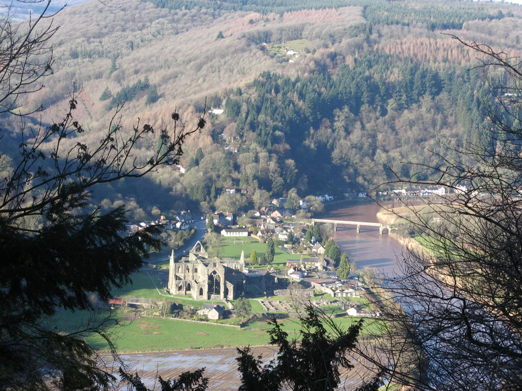 Left: Tintern Abbey from popular view point Devil's Pulpit