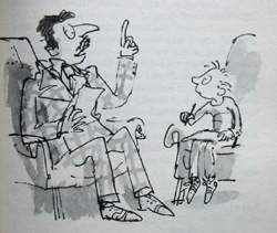 Right: "Yes, Dad," the son said. "I've got that." Illustration from Matilda by Roald Dahl.