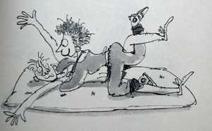 Left: an example of Quentin Blake's energy-charged illustrations -