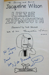 Some of my favourite finds were Phillip Pullman's trilogy His Dark Materials which were in beautiful condition, plus an assorted collection of books by popular author Jacqueline Wilson (Left). Many of these were signed by Jacqueline Wilson herself ( right) and others were also signed by the illustrator, Nick Sharratt . Last but not least, a book written and signed by Ted Hughes came to light. Entitled What is The Truth? this is a book described as a "Farmyard Fable for The Young".
